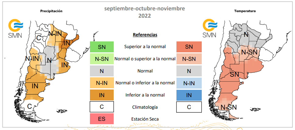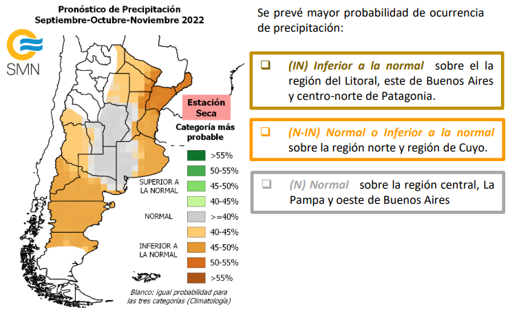 Nota: Dadas las condiciones actuales de sequía sobre una amplia región del país y ante la persistencia del fenómeno de “La Niña” sumado a un pronóstico desfavorable en cuanto a lluvias se recomienda mantenerse actualizado con las actualizaciones de los informes de sequía como así también con los pronósticos de más corto plazo (diario y semanal). https://www.smn.gob.ar/clima/perspectiva