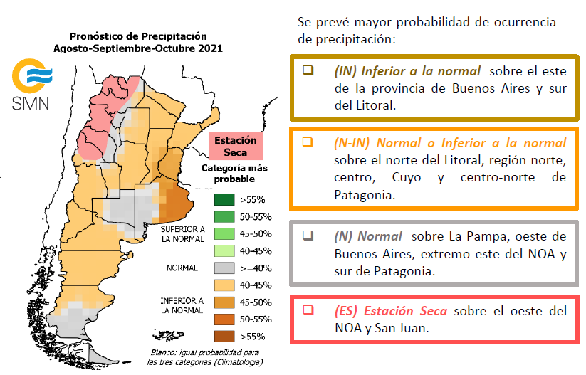 PRONÓSTICO TRIMESTRAL – Precipitación agosto-septiembre-octubre 2021