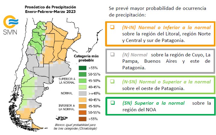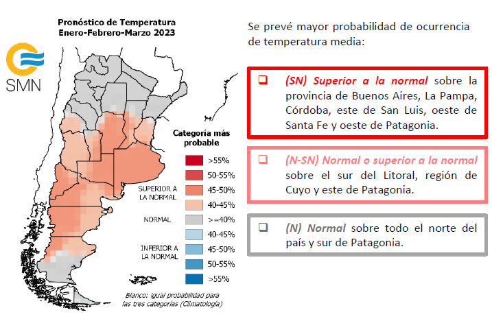Nota: Dadas las condiciones actuales de sequía sobre una amplia región del país se recomienda mantenerse actualizado con las actualizaciones de los informes de sequía como así también con los pronósticos de más corto plazo.https://www.smn.gob.ar/clima/perspectiva