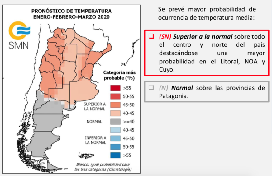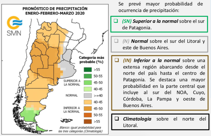 Se observan regiones donde las previsiones numéricas experimentales de los principales modelos globales de simulación del clima y modelos estadísticos indican diferencias en cuanto a las probabilidades en el pronóstico estacional. En condiciones neutras del Fenómeno El Niño Oscilación del Sur (ENOS) y en zonas sin otros forzantes, se espera que el comportamiento responda a la probabilidad del 33.3% en cada categoría (Climatología).