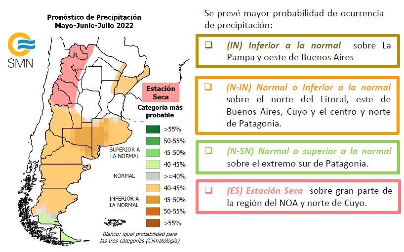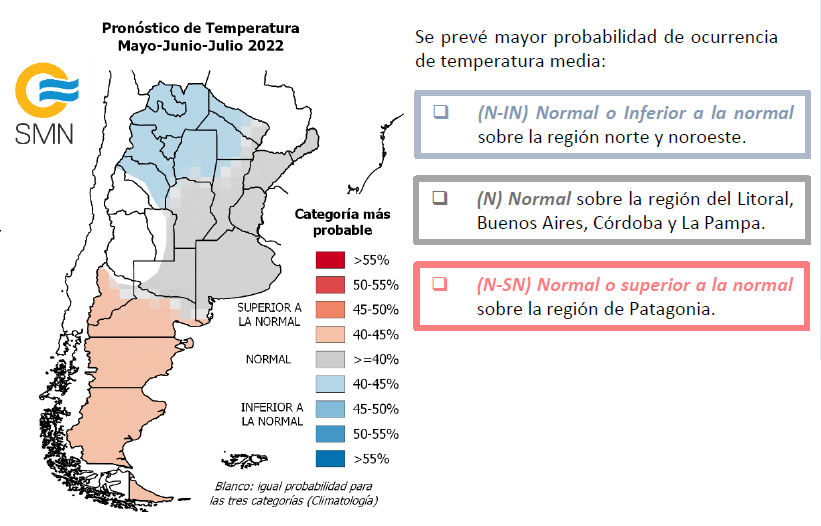 Nota: Se recomienda mantenerse actualizado con los pronósticos de más corto plazo (diario y semanal) y el monitoreo de los forzantes en la escala subestacional. https://www.smn.gob.ar/clima/perspectiva
