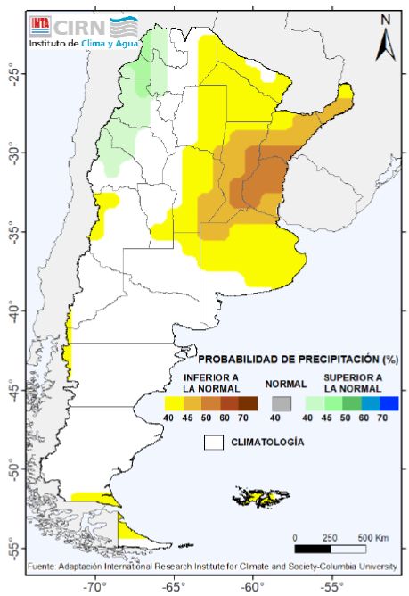 Esta información corresponde solo a un pronóstico climático estacional. En el próximo informe complementaremos con la información generada por el SMN.