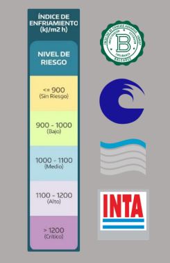 velocidad del viento, la temperatura ambiente y las precipitaciones previstas. Valores del índice superiores a 1000 kj/m2.h determinan riesgos de enfriamiento.