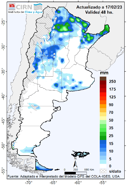 Las precipitaciones pronosticadas serían superiores a las normales para la época sólo sobre Cuyo (oeste).