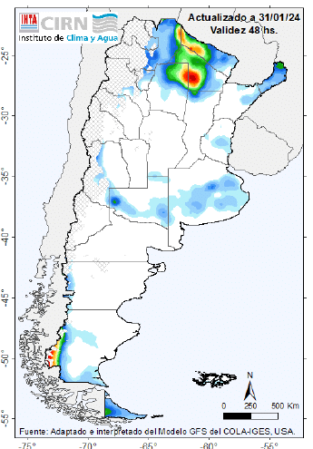 En el resto del norte argentino y la Patagonia (centro y noroeste) se presentarían valores inferiores a los normales.