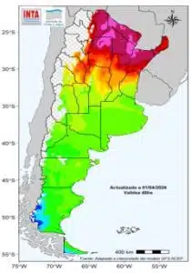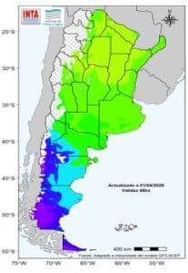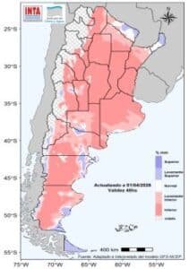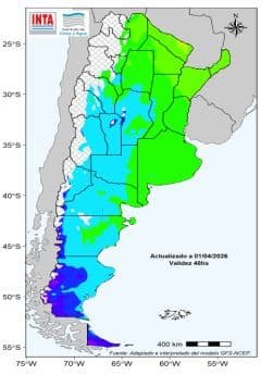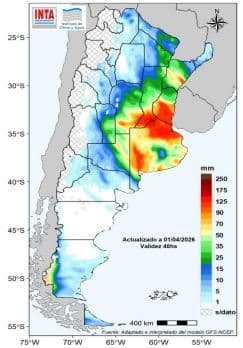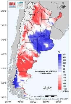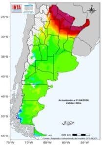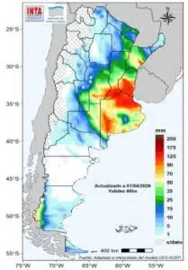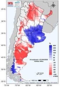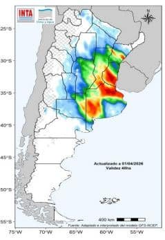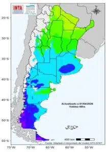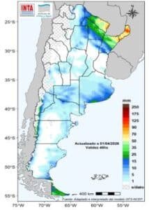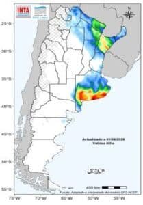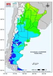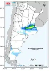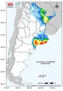 En contraste, el norte de la provincia de Buenos Aires recibiría aportes más moderados, lo que permitiría mejorar la disponibilidad de agua en el suelo en sectores que venían con reservas ajustadas.