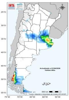 El sur de la región aparece como el área más comprometida, donde los volúmenes previstos podrían profundizar los excesos hídricos, afectando la transitabilidad y complicando las labores de cosecha.