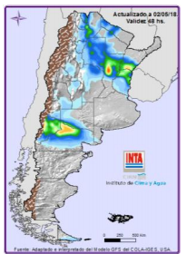 • Precipitaciones de diferentes intensidades en todo el territorio Nacional. Los mayores acumulados se darían en las provincias de las regiones Pampeana y NEA, sobre Corrientes, Entre Ríos, Santa Fe, centro-este de Chaco y de Formosa, este de Santiago del Estero y de Córdoba, centro-este de Buenos Aires.