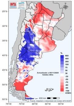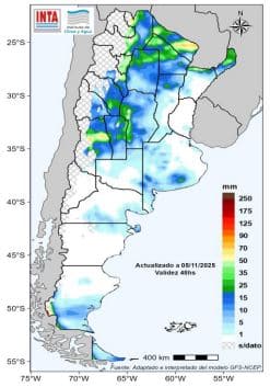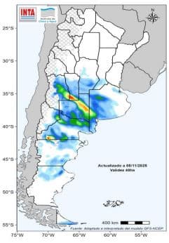 Para los próximos 14 días se prevé precipitaciones de variada intensidad sobre gran parte del territorio argentino. Los mayores acumulados se registrarían en el centro-oeste y el extremo norte del país.