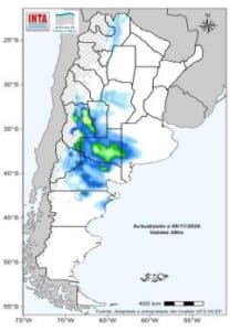 Lluvias y tormentas de variada intensidad sobre el centro y norte del país y Patagonia (norte). Algunas localmente intensas sobre Mendoza, San Luis, Corrientes y Misiones.
