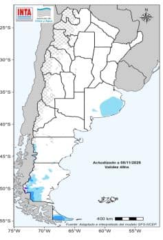 Lluvias y lloviznas aisladas en la Patagonia (centro y sur).