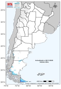 LLUVIAS y lloviznas aisladas en la Patagonia (centro y sur).