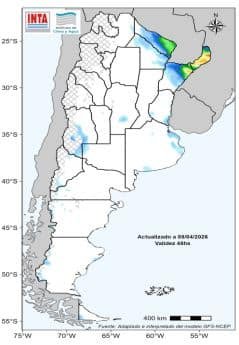 Se prevén lluvias en buena parte del área agrícola durante las próximas dos semanas, con una distribución irregular que podría favorecer la recuperación de humedad en zonas que venían con déficit.