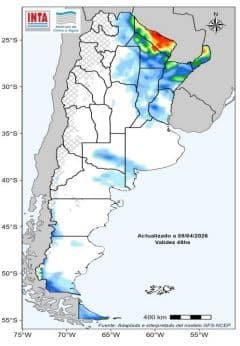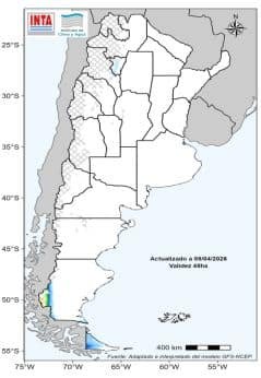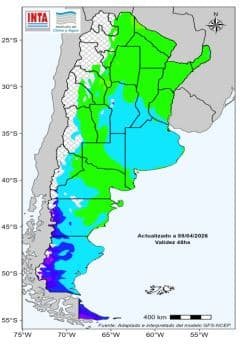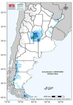 Entre los días 15 y 20 de abril se prevé que los acumulados de lluvia sean superiores a los registrados durante la semana actual en gran parte del centro y norte del país. En la Patagonia, especialmente en el oeste y sur, continuaría la probabilidad de lluvias y nevadas