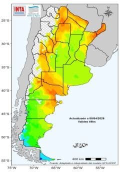 Durante las próximas dos semanas se esperan precipitaciones en amplias regiones productivas, con acumulados variables que comienzan a modificar el escenario hídrico. El foco se posiciona en áreas con bajos contenidos de agua en el suelo, donde estas lluvias podrían aportar una mejora progresiva en las reservas.