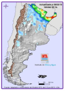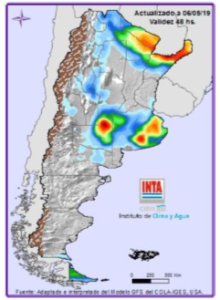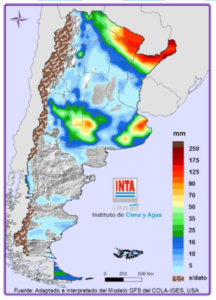 - EVENTOS METEOROLOGICOS DESTACADOS DE LA SEMANA: entre los días miércoles y viernes se prevén lluvias y tormentas de variada intensidad, algunas localmente más intensas sobre el extremo noreste del país. Entre los días jueves y sábados existe la probabilidad de lluvias y tormentas de variada intensidad en distintas regiones del centro del territorio. De todos modos, esta información debe chequearse diariamente para la mejor toma de decisiones.