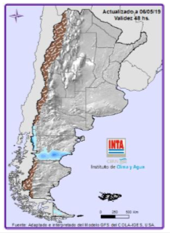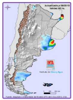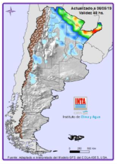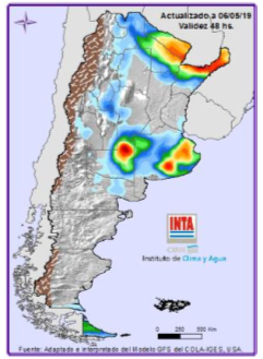 Lluvias pronosticadas menos intensas que la semana que la precede, se observarían entre el 14 y el 21 de Mayo. Las principales, ocurrirían sobre el Litoral, región Pampeana (este) y Patagonia.