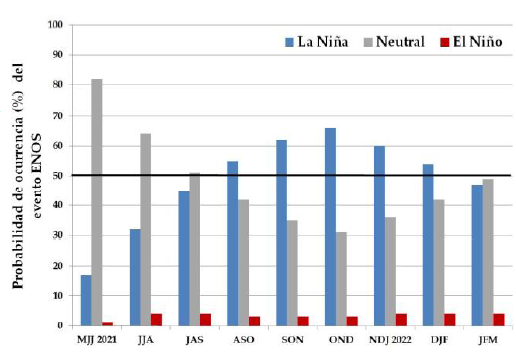 Los indicadores, tanto sobre el Océano Pacífico como en la atmósfera, muestran condiciones NEUTRALES. La temperatura superficial del agua en la región NIÑO 3.4 del Pacífico Ecuatorial indica anomalías negativas leves (más frías que lo normal), pero dentro del umbral de valores normales. Se espera que durante el invierno perduren las condiciones de neutralidad del ENSO.