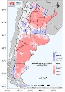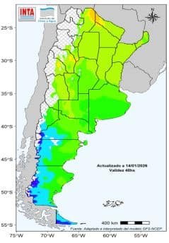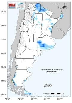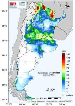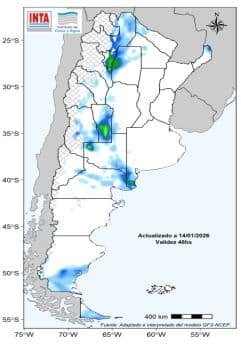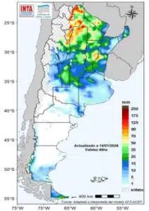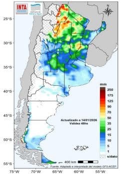 Entre el 21 y el 26 de enero se prevé que continúen los eventos de lluvias y tormentas sobre la mayor parte del centro y norte del país. Se prevé que en el extremo norte los acumulados sean mas importantes. Se podría registrar lluvias y lloviznas sobre el centro-oeste y sur patagónico. Sin embargo, no se prevé acumulados significativos en el norte de la Patagonia.