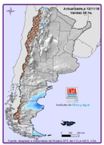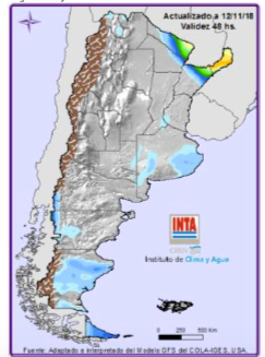 - EVENTOS DESTACADOS: continua la probabilidad de ocurrencia de tormentas localmente intensas sobre el Litoral durante el día martes. Podrían registrarse temperaturas inferiores a los 5°C sobre Bs. As. (centro y sur) el día jueves y en la mañana del viernes, se podrían registrar algunas heladas aisladas. De todos modos, esta información debe chequearse diariamente para la mejor toma de decisiones.