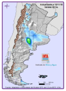 - LLUVIAS ESPERADAS: NOA: probables lluvias y tormentas durante el martes. Fin de semana con probables precipitaciones y tormentas. NEA: probables lluvias y tormentas el día martes. Miércoles solo en el extremo norte y retornan las lluvias hacia el fin de semana sobre dicho sector. CENTRO DEL PAÍS: probables lluvias y tormentas durante el martes sobre el este de la región luego inestable. Viernes y sábado con probabilidad de lluvias y tormentas. SUR: Lluvias y nevadas aisladas sobre el centro y sur a lo largo de la semana.