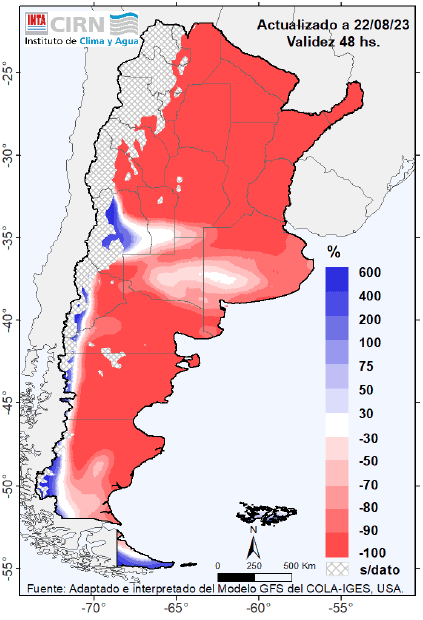 De esta manera, las precipitaciones pronosticadas resultarían superiores a las normales sobre el Litoral y Bs. As. (este y sur), Mendoza (oeste) y la Patagonia (oeste).