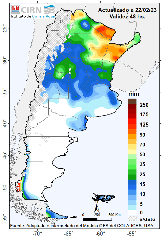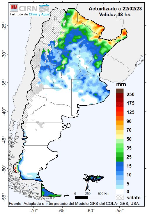 De este modo, las precipitaciones se encontraría por encima de lo normal sobre NEA, Cuyo (centro) Chubut (oeste) Santa Cruz (oeste) y Tierra del Fuego.