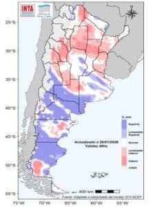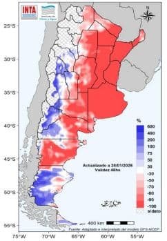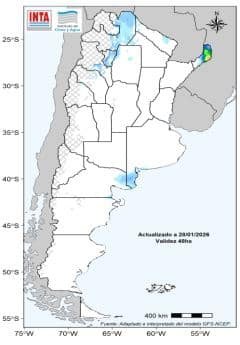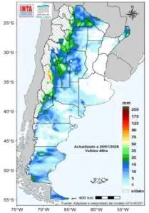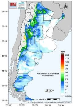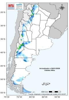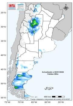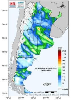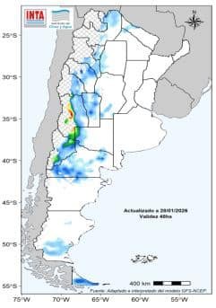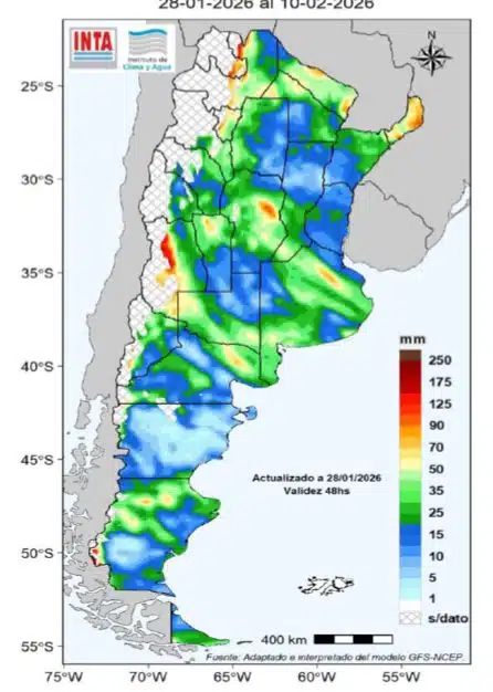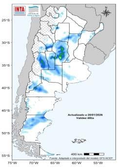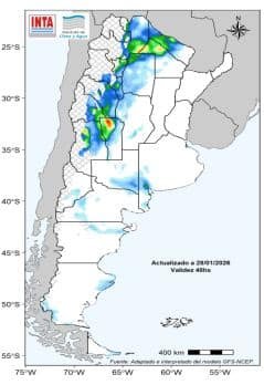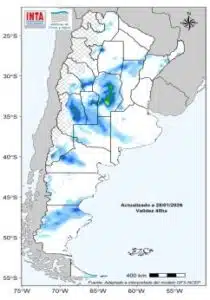 Entre el 4 y 9 de febrero se prevé eventos de lluvias y tormentas que abarcarían la mayor parte del centro y norte del país. Se podría registrar lluvias y lloviznas sobre el resto de la Patagonia.