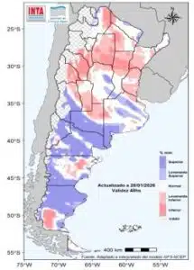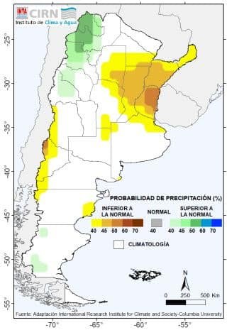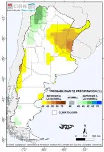 Para el próximo trimestre se prevé una mayor probabilidad de lluvias entre normales a inferiores a lo normal en las provincias del Litoral y sur de Cuyo. En el oeste del NOA, son mayores las probabilidades de transitar un trimestre con lluvias entre normales a mayores a las normales para la época.