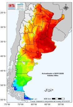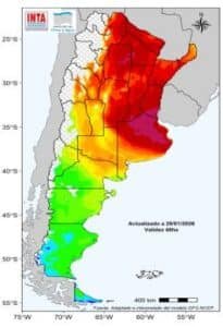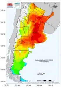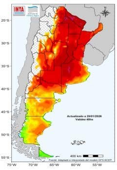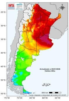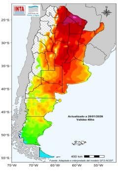 Ambiente cálido a caluroso sobre la mayor parte del centro y norte argentino. Se registrarían valores que superarían los 36–38 °C.