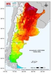 Ambiente cálido a caluroso sobre la mayor parte del centro y norte argentino. Se registrarían valores que superarían los 36–38 °C. Las temperaturas mínimas se mantendrán con valores superiores a 20-24 °C en áreas del centro-oeste y norte del territorio.