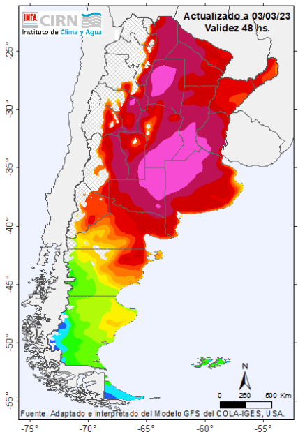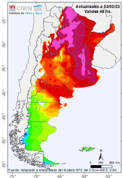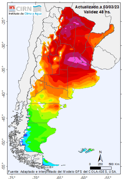 Temperaturas estimadas a 2 m del suelo Fuente análisis realizado en el Inst. de Clima y Agua INTA a partir del modelo GFS.