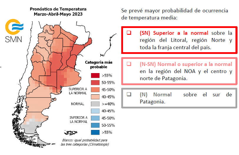 PRONÓSTICO TRIMESTRAL -Temperatura marzo-abril-mayo 2023