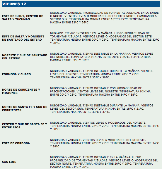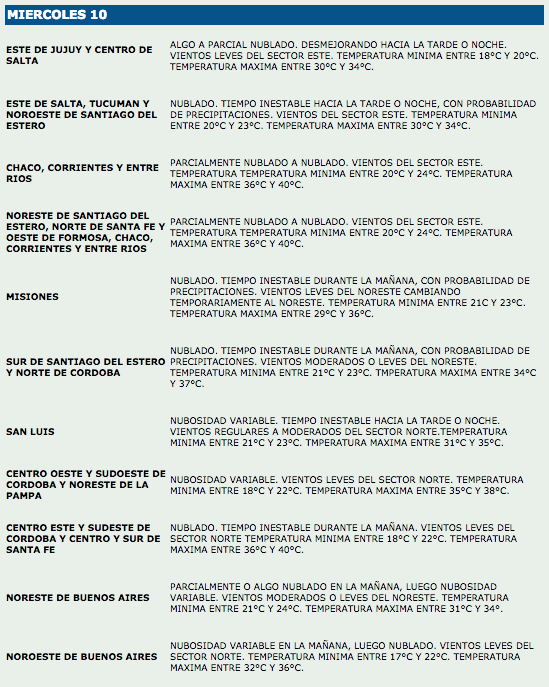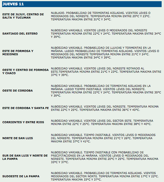 ClimaPronóstico meteorológico 9 de enero de 2018FacebookTwitterWhatsAppTelegramEmailImpresión Pronóstico meteorológico para las actividades agropecuariasFuente: SMN