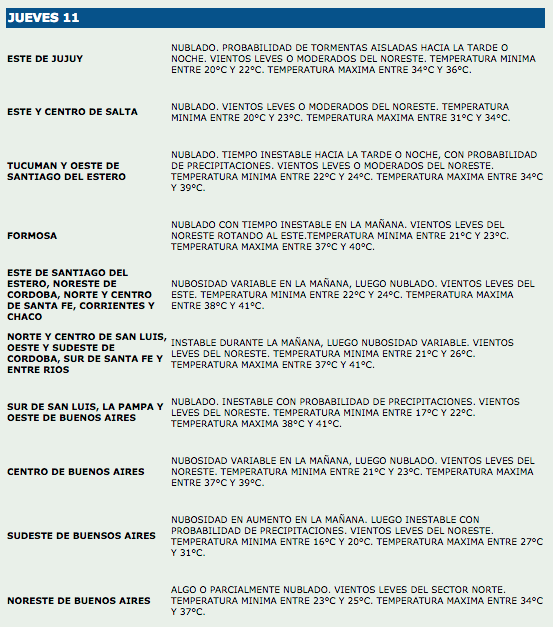 ClimaPronóstico meteorológico 8 de enero de 2018FacebookTwitterWhatsAppTelegramEmailImpresión Pronóstico meteorológico para las actividades agropecuariasFuente: SMN