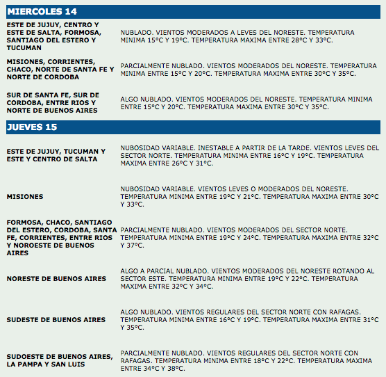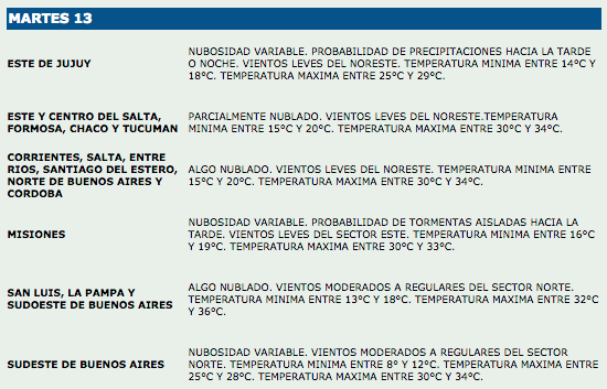 ClimaPronóstico meteorológico 13 de febrero de 2018FacebookTwitterWhatsAppTelegramEmailImpresión Pronóstico meteorológico para las actividades agropecuariasFuente: SMN