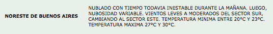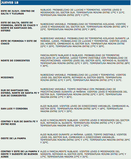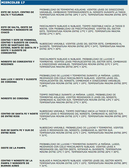 ClimaPronóstico meteorológico 15 de enero de 2018FacebookTwitterWhatsAppTelegramEmailImpresión Pronóstico meteorológico para las actividades agropecuariasFuente: SMN