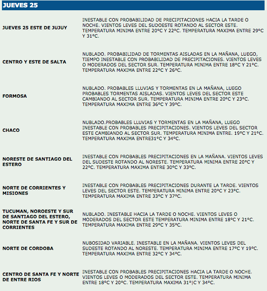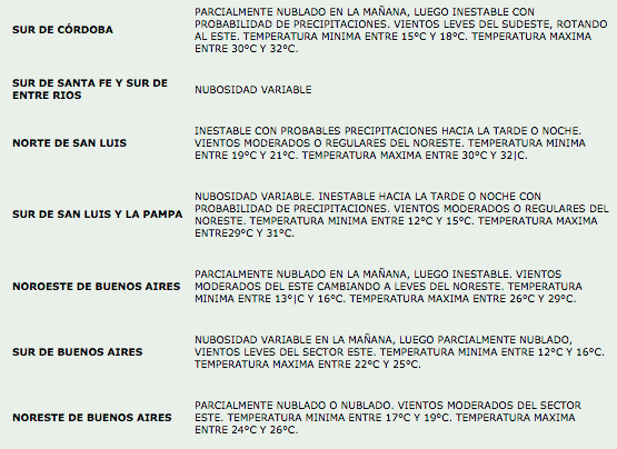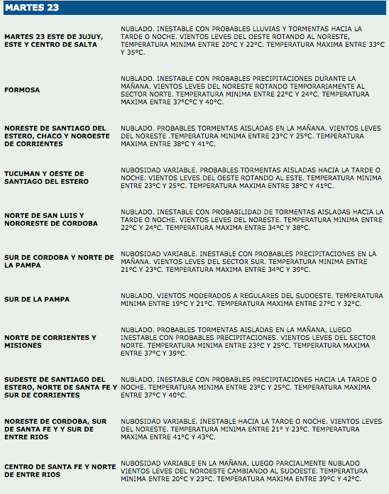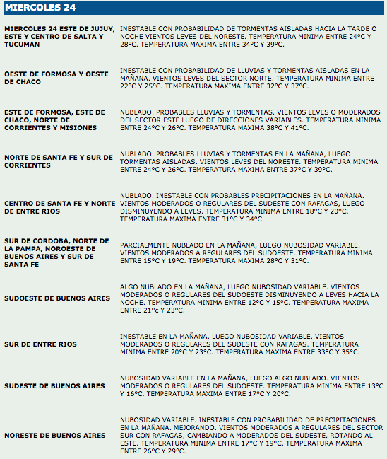 ClimaPronóstico meteorológico 22 de enero de 2018FacebookTwitterWhatsAppTelegramEmailImpresión Pronóstico meteorológico para las actividades agropecuariasFuente: SMN