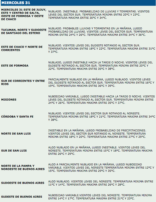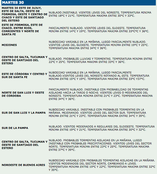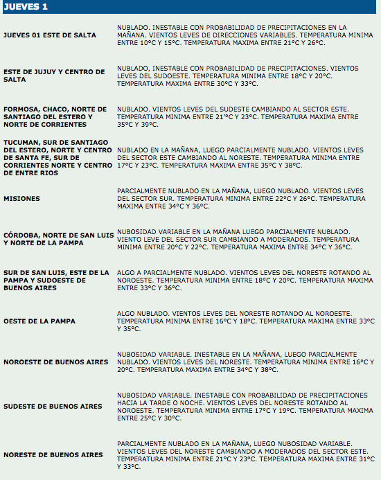 ClimaPronóstico meteorológico 29 de enero de 2018FacebookTwitterWhatsAppTelegramEmailImpresión Pronóstico meteorológico para las actividades agropecuariasFuente: SMN