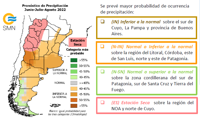 Nota: Se recomienda mantenerse actualizado con los pronósticos de más corto plazo (diario y semanal) y el monitoreo de los forzantes en la escala sub estacional. https://www.smn.gob.ar/clima/perspectiva