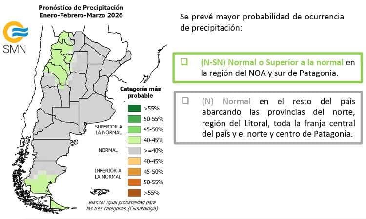 Desde el ámbito técnico aclaran que se trata de tendencias climáticas generales para el trimestre, por lo que recomiendan complementar esta información con pronósticos de corto y mediano plazo, fundamentales para anticipar eventos específicos de ocurrencia semanal y tomar decisiones operativas en el campo.