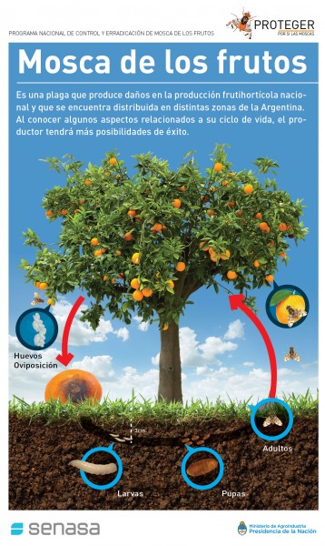 Con el objetivo de avanzar en el control y erradicación de la plaga, el Senasa establece los lineamientos para el control, responsabilidad primaria de los productores como uno de los pilares fundamentales de la estrategia nacional. En este sentido, resulta esencial que los productores recolecten y destruyan en forma segura los frutos que se encuentran en el suelo o que permanecen en planta sin ser aprovechados; que utilicen herramientas de control validadas como son el control químico empleando insecticidas amigables con el medio ambiente respetando dosis del marbete y períodos de carencia y el uso de la técnica de trampeo masivo.
