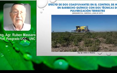 Massaro describió los métodos de trabajo utilizado pulverizaciones con equipos terrestres automotrices en situaciones reales de campo con macro parcelas, en un ambiente meteorológico y con técnicas de pulverización críticas para que pueda notarse el efecto de un coadyuvante.
