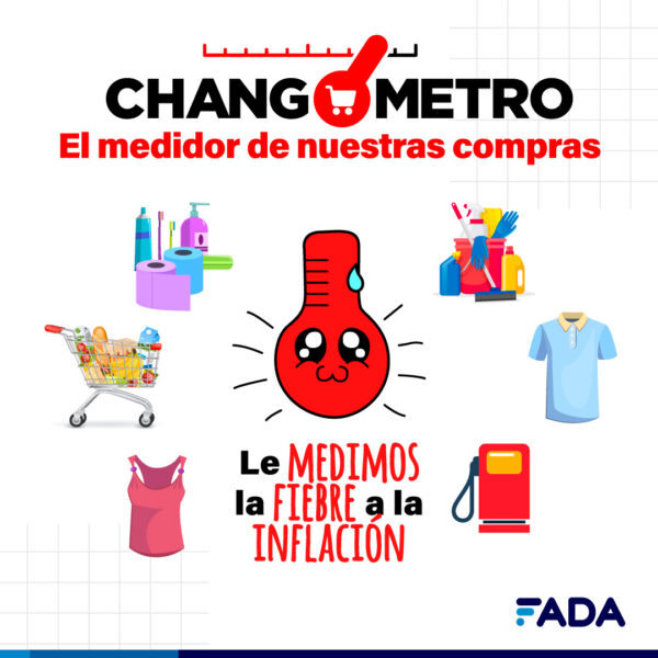 “Changómetro”. El Medidor de nuestras compras. Es una nueva medición de FADA que le mide la temperatura a la inflación. Mes a Mes. Propone innovar en formas de entenderla, al profundizar sobre la inflación producto por producto. Indaga más allá de las cifras como dato frío para dimensionarlo en cada familia. Hablamos todo el tiempo de la Inflación, pero ¿qué es? Sabemos lo que sufrimos por ella, pero ¿cómo actúa?. Este desarrollo cruza distintas cifras y aporta otros tipos de análisis para que podamos entender más sobre estos términos económicos que sufrimos en nuestra realidad diaria. Traslada los números a imágenes, para visualizar y profundizar con explicaciones basadas en información. Y ante la preocupante información señala propuestas para avanzar en escenarios de solución.