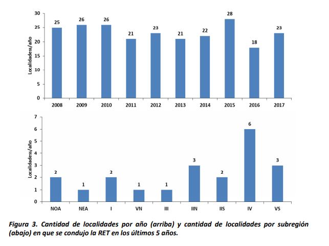 Durante los últimos 5 años la RET se condujo, en promedio, en 22 localidades por años (Figura 3)