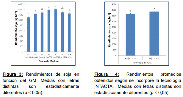El MIP vs dos tratamientos, uno testigo sin control y otro con control parcial de plagas generó 753 kg ha -1 más de soja en promedio (p < 0,05).
