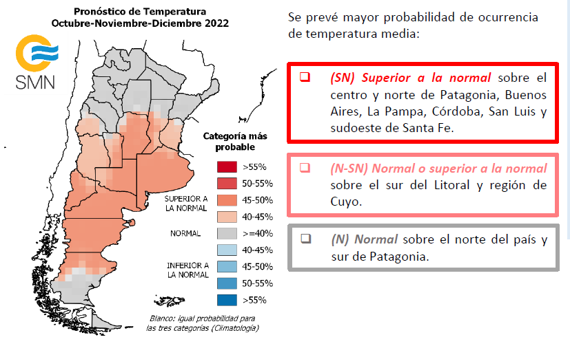 - Si, por ejemplo, para una región determinada el pronóstico estacional prevé las mayores chances de precipitación en la categoría inferior, NO es indicativo que no puedan haber eventos de lluvia o inclusive que alguno de ellos puedan ser localmente intensos.