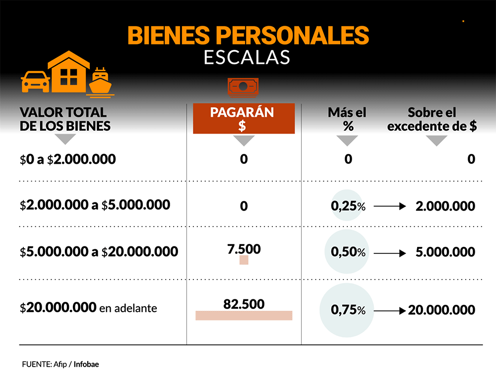 Al mismo tiempo, eleva las alícuotas para aquellos de mayor poder adquisitivo. Quienes declaren bienes entre $2.000.000 y $5.000.000 pagarán una tasa de 0,25%; de $5.000.000 a $10.000.000 tributarán 0,50%, y a partir de los $20.000.000, la tasa será de 0,75 por ciento.