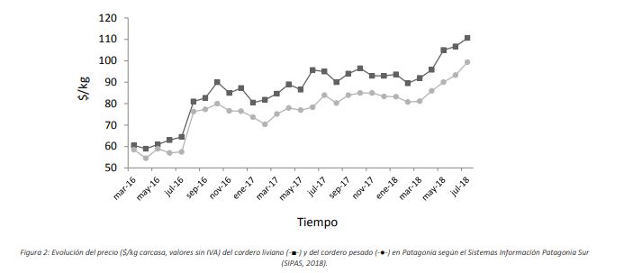 En la actualidad el precio de venta del cordero pesado en Patagonia es castigado en un 11,0%, respecto al cordero liviano (figura 2). Por el contrario, en los principales países productores de carne ovina (Australia y Nueva Zelanda), el cordero pesado se paga un 25,0% más que el cordero liviano.