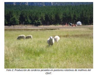 EXPERIENCIAS DE PRODUCCIÓN DE CORDEROS PESADOS EN EL CAMPO EXPERIMENTAL AGROFORESTAL INTA TREVELIN (CEAT). En el CEAT se han desarrollado varias experiencias (2009, 2010 y 2011) de producción de cordero pesado terminado en pastoreo de mallines (Foto 2).